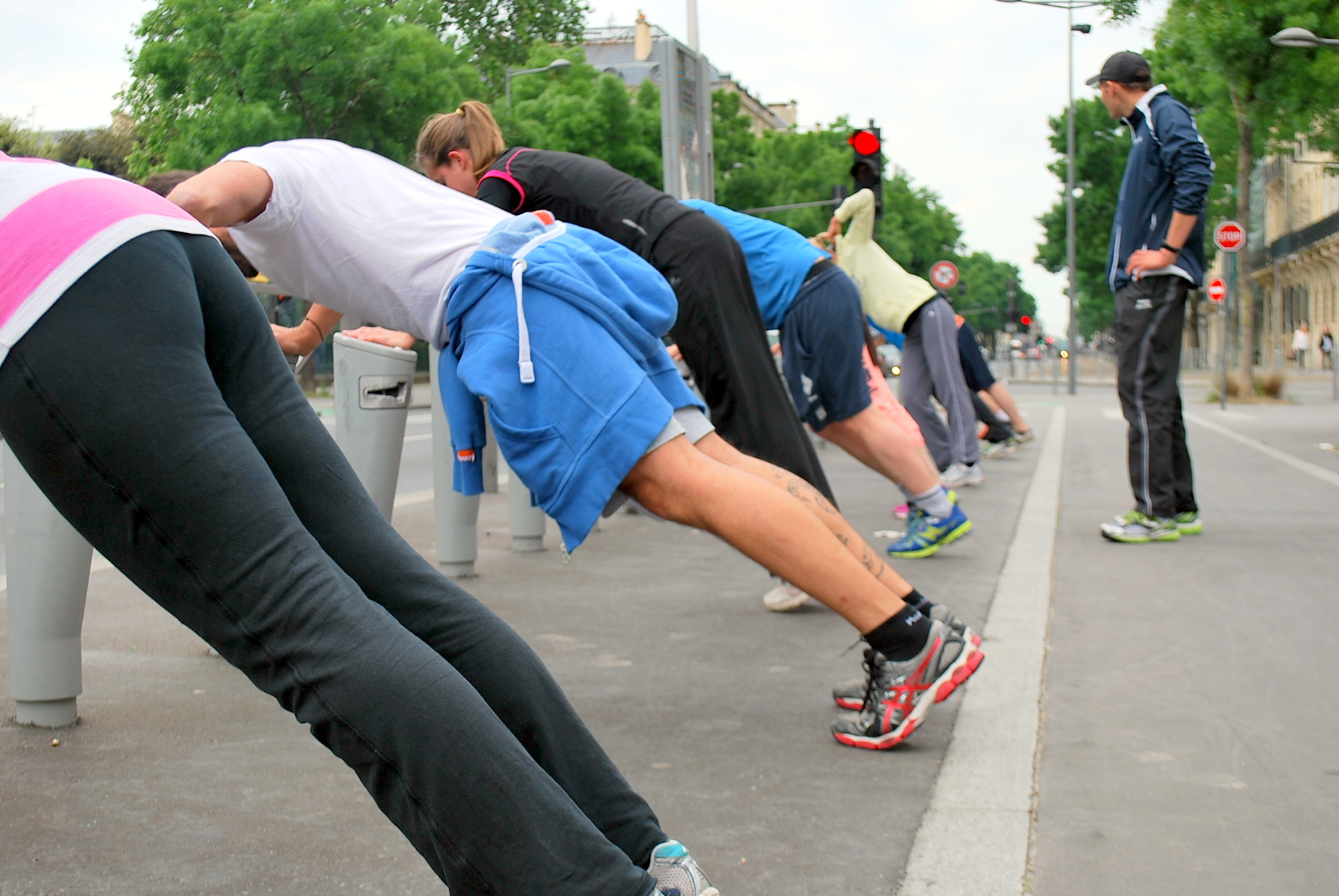 Nicolas Fonteneau : C’est simple ! L’espace urbain est la plus grande salle de sport en plein air ! Bordeaux par exemple et ses 4,5 kilomètres de quais, offrent une surface plane et régulière, comparable aux tapis de course avec la vue en plus ! D’autre part, le mobilier urbain permet de pratiquer tout un panel d’exercices de renforcement musculaire, du gainage grâce aux chaînes aux tractions effectuées sur des grilles en passant par la musculation des membres inférieurs avec les marches, bancs, etc.