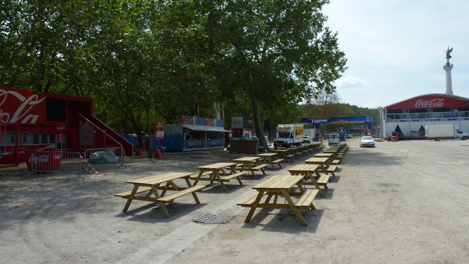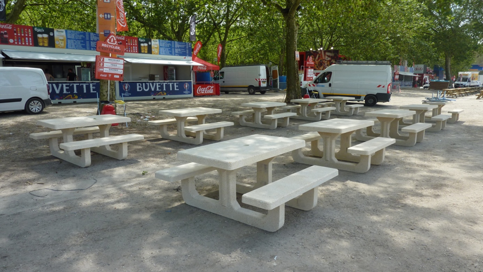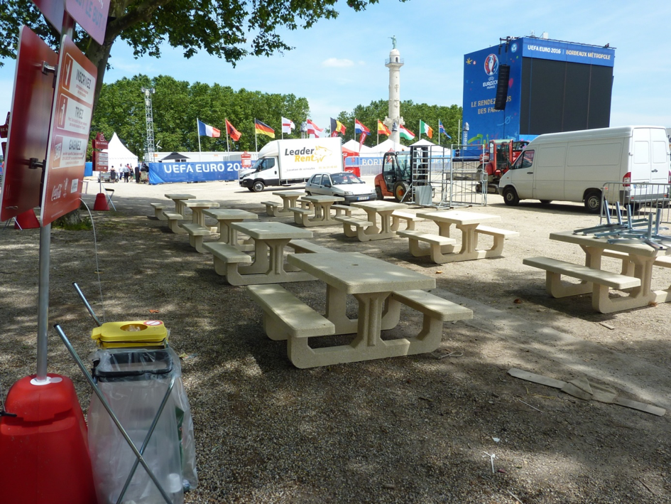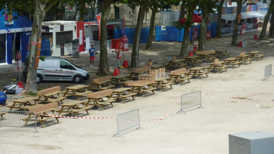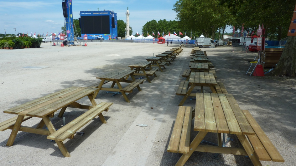Retrouvez quelques photos de la place des Quinconces équipées des tables de pique-nique Déclic.
