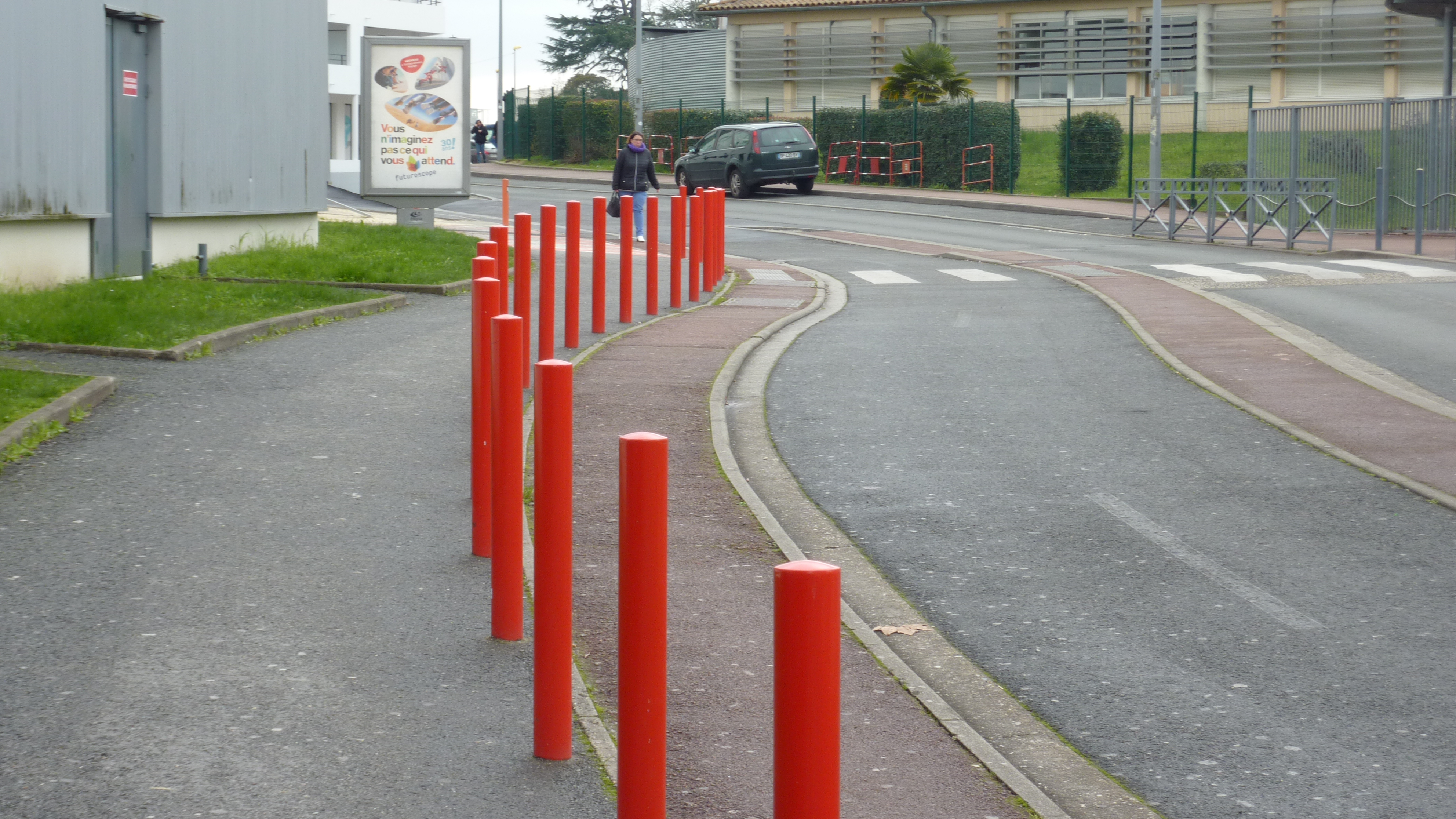 Les deux équipements ont étés personnalisés selon les attentes du client et les options disponibles pour ces produits. RAL 3020 pour l’ensemble et têtes plates inox pour les bornes. La couleur choisie permet une visibilité optimale de chaque élément, pour les piétons comme pour les automobilistes.